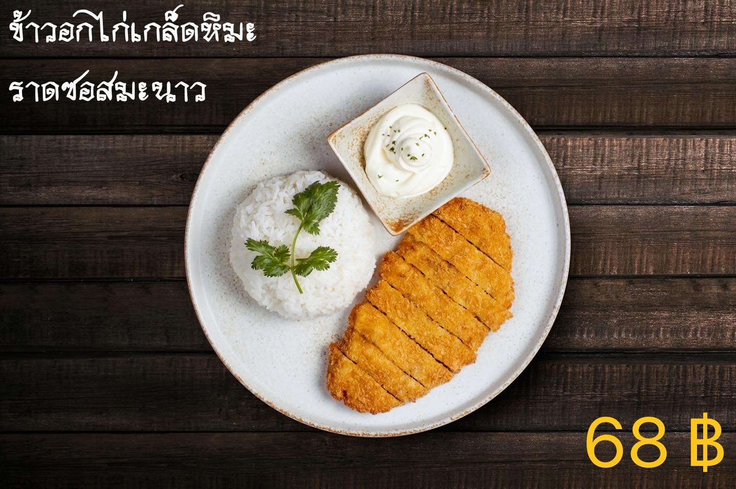 ข้าวอกไก่เกล็ดหิมะราดซอสมะนาว